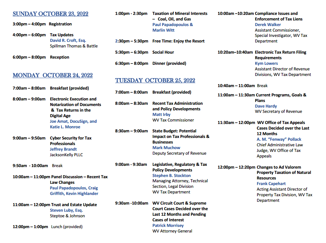2022 West Virginia Tax Institute